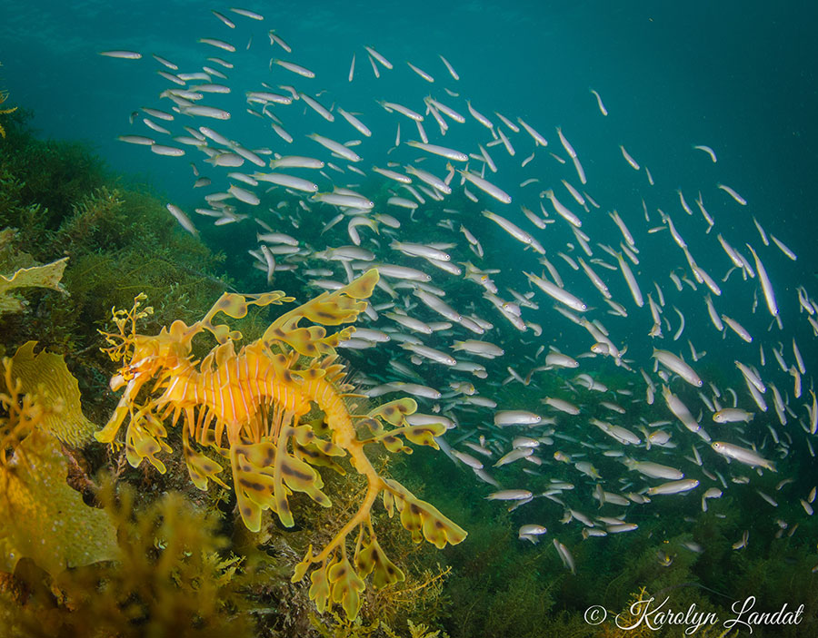 Leafy seadragons, seahorses, marine life encrusted pylons